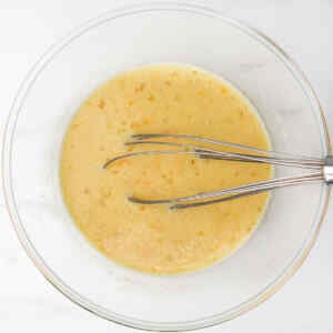 - In a mixing bowl, whisk together the eggs, maple syrup, vanilla extract, oat milk, and melted coconut oil until smooth and well combined.3 Eggs extra large, 80 Milliliter Ahornsirup, 2 TL Vanilleextrakt, 250 Milliliter Hafermilch
