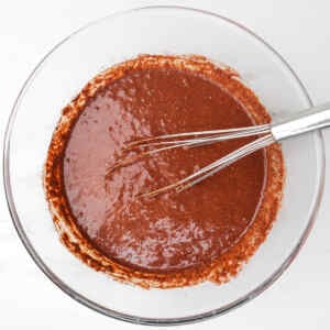 - Pour the wet ingredients into the dry ingredients and whisk until fully combined.
