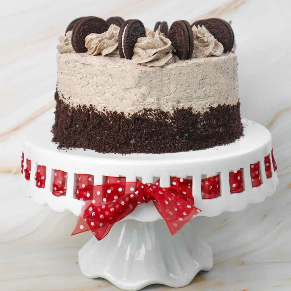 - Décorez avec des Oreos entiers sur le dessus et des miettes d'Oreo sur les côtés si vous le souhaitez.4 à 6 Oréos, 8 Oréos