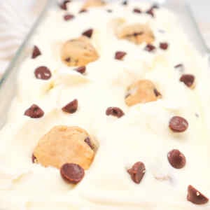 - A Creamy No-Churn Dessert with Cookie Dough in Every Scoop