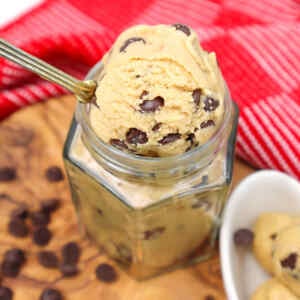 I love how this dough delivers all the comfort of a classic cookie mixture without any baking. The butter, sugars, milk, and vanilla come together into something soft, creamy, and deeply satisfying. Then the dark chocolate chips add little bursts of richness throughout, giving each spoonful a lovely contrast of smooth and chunky texture.