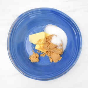 - In a mixing bowl, beat the butter, granulated sugar, and light brown sugar together until smooth and creamy.60 Grams Unsalted butter, 25 Grams Granulated sugar, 50 Grams Light brown sugar