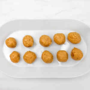 - Scoop out small portions and roll into bite-sized balls. Place them onto a lined baking tray.