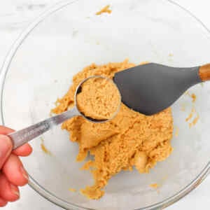 - Add the peanut butter and stir until the mixture comes together into a smooth, thick dough.110 Grams peanut butter