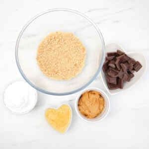 - Transfer the crumbs to a mixing bowl. Add the melted butter and icing sugar, and mix until combined.60 Grams Unsalted butter, 120 Grams Icing sugar