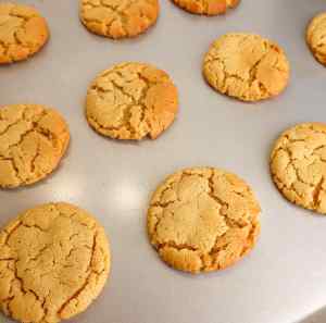 Bake one tray at a time on the centre rack for 9-11 minutes, until the edges are lightly golden and the tops look soft with natural cracks.